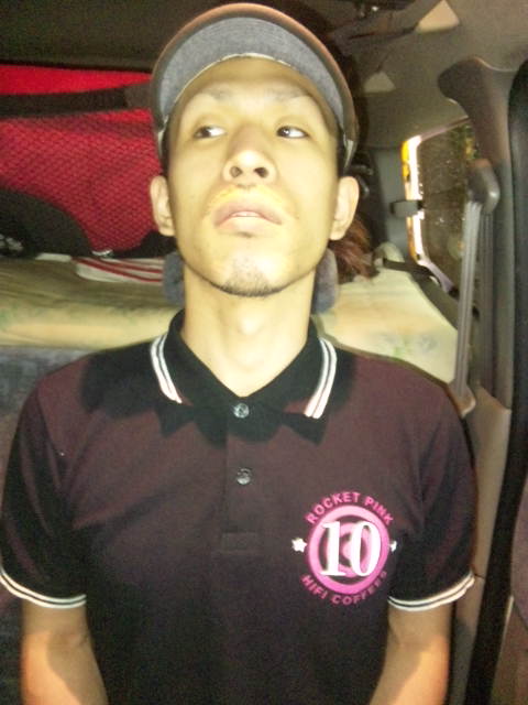 ああ、昨日の日記で書いた、三条ROCKET PINKとハイファイコーヒーズのコラボポロシャツを着たヒー君の画像をアップしときますね!